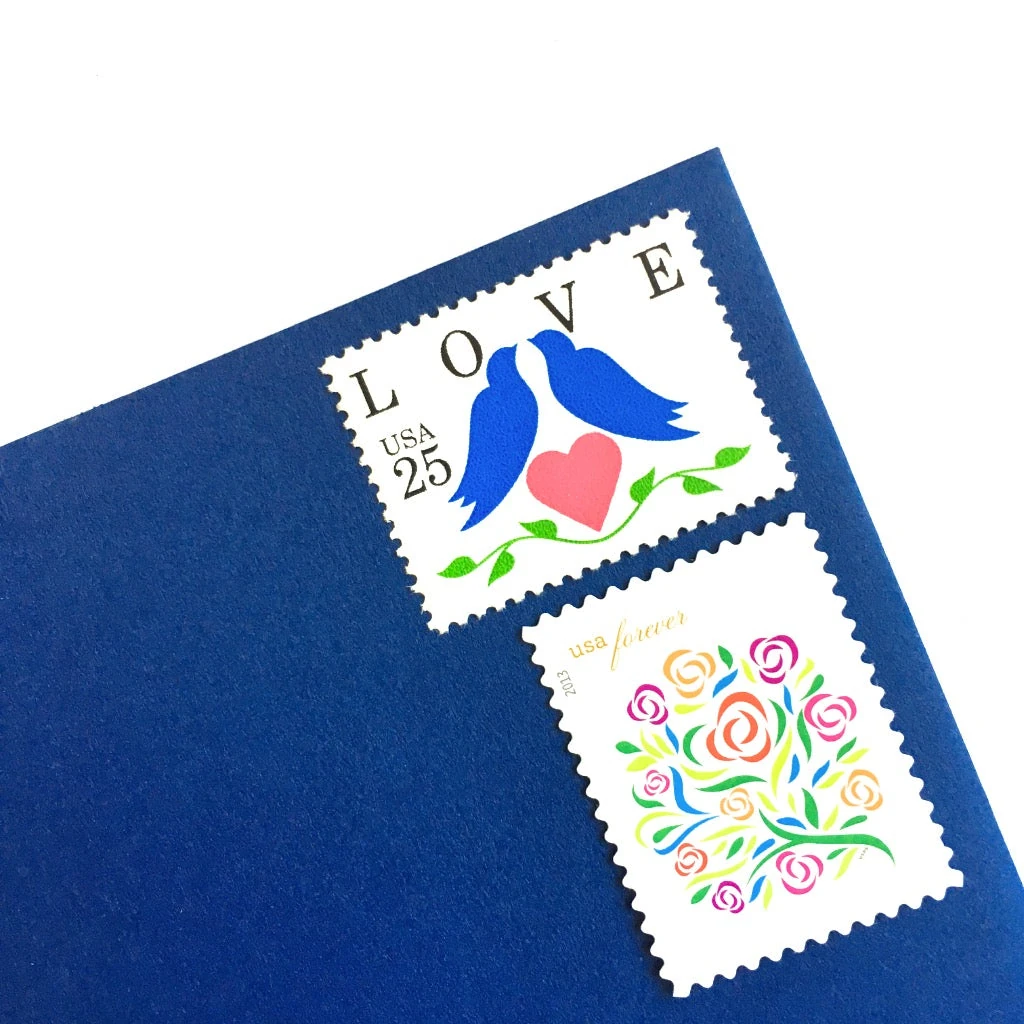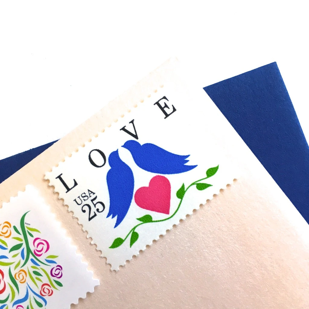 - Includes 10 (ten) 25¢ Blue Love Birds stamps