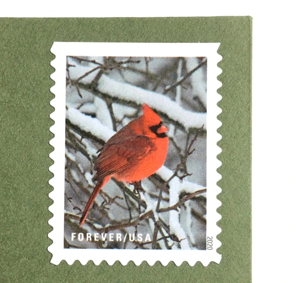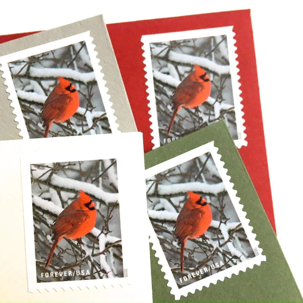 - Festive Holiday Design: Each stamp showcases a beautiful red cardinal perched in a serene, snowy setting. This classic Christmas imagery adds a warm and traditional touch to any envelope.