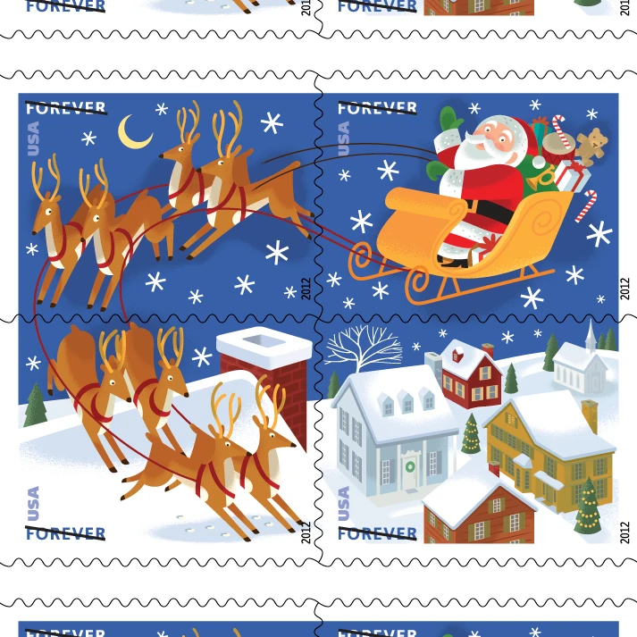 Santa and Sleigh Stamps: Festive Holiday Postage
