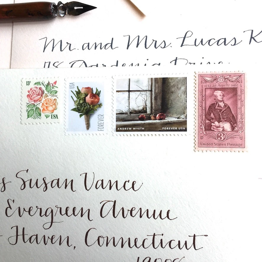 Just finished mailing my sister’s wedding invitations here in Houston, and these stamps were perfect! The vintage pink and ‘blush champagne’ color looked so elegant on the envelopes. I was worried about using old stamps for current postage, but they worked flawlessly at the post office. The delivery was super quick, too. I’m definitely ordering more for my holiday cards this year.